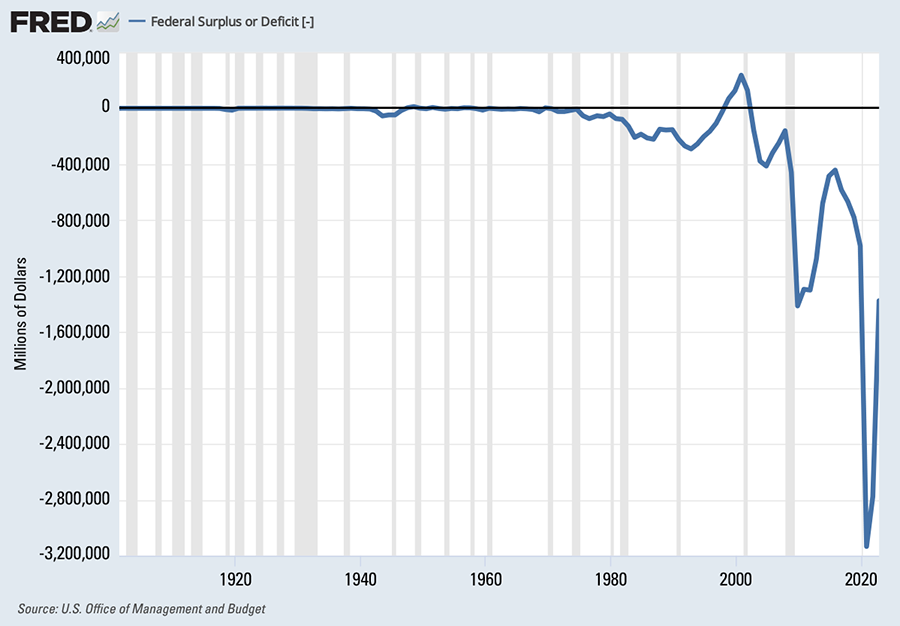 At its simplest, deficit spending is economic stimulus intended to avoid severe slowdowns in economic growth when consumer spending falls. The concept, famously proposed by John Maynard Keynes as a fiscal policy stance to aid in recovery from the Great Depression, centered on the idea that the government has the ability to “make up” for a dearth of business and consumer expenditures. In other words, by simply increasing government spending, policy makers should be able to keep overall economic activity level, avoiding big swings (cycles).