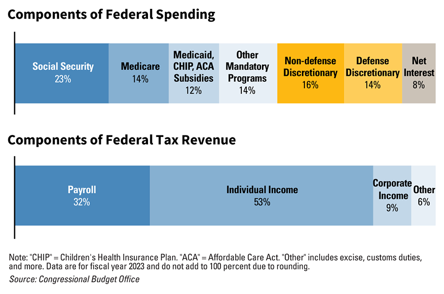 While much of the ongoing debt ceiling debate will focus on short-term concessions from political opponents, the three primary components of Federal spending – Social Security, Medicare, and Medicaid – are only going to grow as a percentage of GDP. Collectively, these programs make up approximately 40% of annual spending (Figure 4), and this is before considering full retirement of the Baby Boomers (expected by 2030v). As a reminder, these are all mandatory components of government outlays.