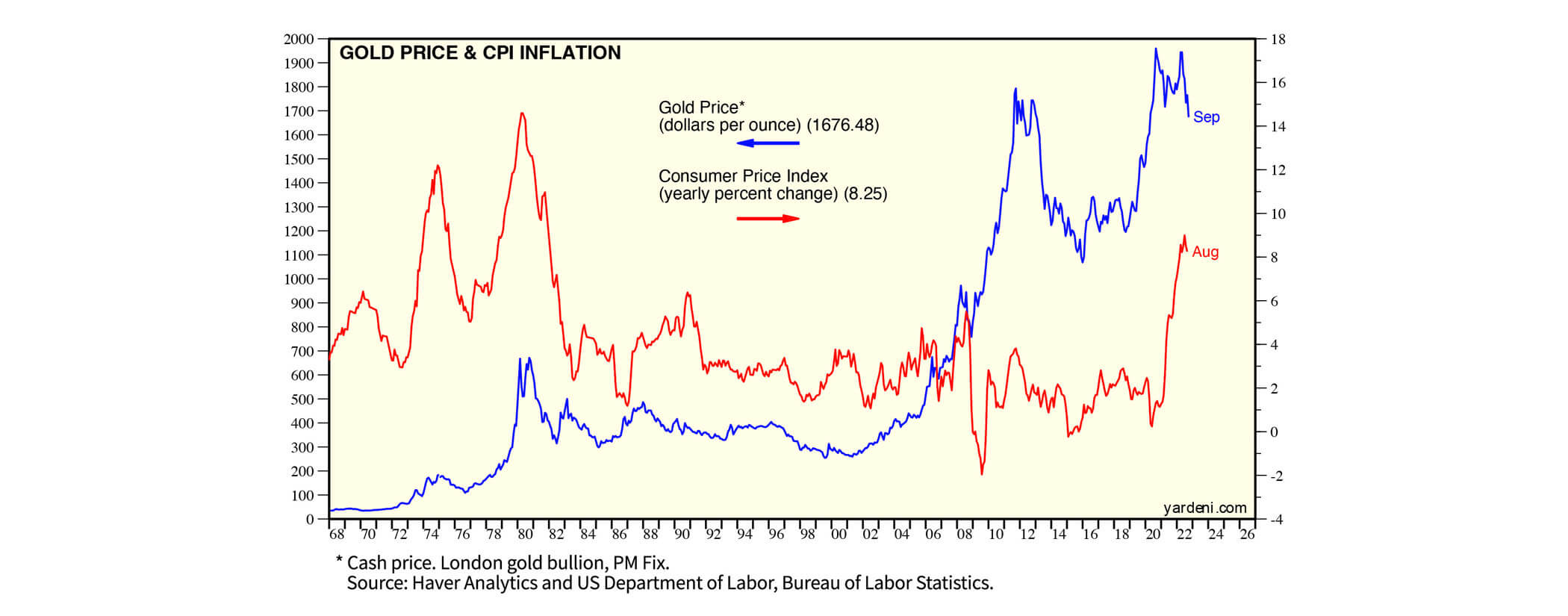 Unfortunately, actual data invalidates most of this oversimplified argument. Historically, the link between inflation (measured by the Consumer Price Index, or CPI) and gold prices has not been strong. In fact, over the past half century, the correlation between the price of gold and inflation has been a paltry 0.16 (i) – if gold were in fact a good inflation hedge, we would expect this to be much closer to 1. Today is a textbook example of this point. With inflation hitting multi-decade highs, gold has been trading relatively sideways for the past few years, again exhibiting little direct correlation.